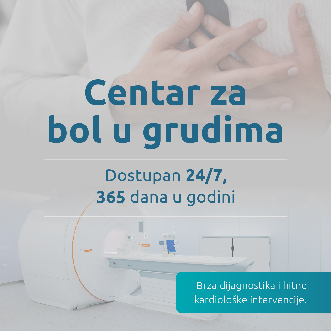 Specijalizovani Centar za bol u grudima Opšte bolnice MediGroup obezbeđuje hitnu kardiološku procenu, kompletnu dijagnostiku i stručnu intervenciju – 24 sata dnevno, 365 dana u godini, bez čekanja.