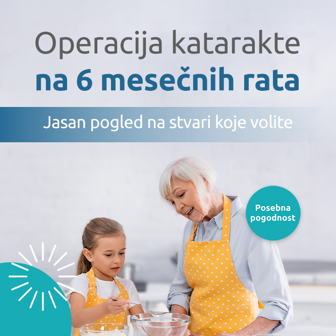 U našoj Očnoj bolnici MediGroup klinika Miloš brinemo da vam jasan vid bude dostupan bez odlaganja. Zato smo pripremili posebnu pogodnost – operaciju katarakte sada možete obaviti uz mogućnost plaćanja na 6 mesečnih rata putem administrativne zabrane. Na ovaj način želimo da uklonimo finansijsku barijeru i omogućimo vam da se što pre vratite jasnom i sigurnom pogledu na svet. Savremena tehnologija, stručni tim i fleksibilni uslovi plaćanja čine da vaša odluka o operaciji bude jednostavnija i bez dodatnog opterećenja.